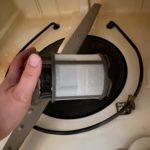 This one requires a little more scrubbing than the filter in mine. I don’t know if it’s the same for all dishwashers so I can only go by mine. Pop is out and get a brush because you do not want to touch what’s hanging onto that screen. Ick!